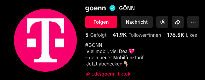 Telekom GÖNN Konzeption eines TikTok-Kanals für den Telekom-Tarif GÖNN mit Kanalstrategie, Contentformaten, Creatorkonzepten, Skripten und Drehbegleitung. Für Elbkind Reply